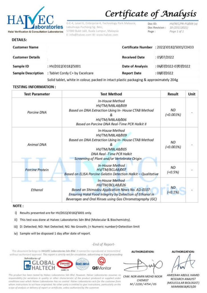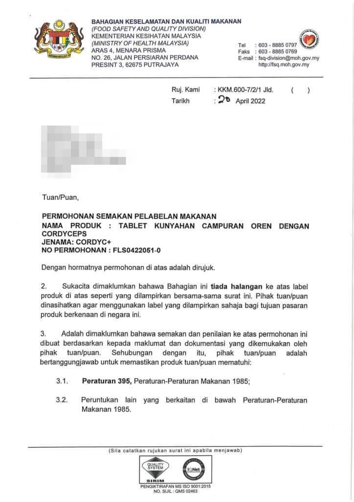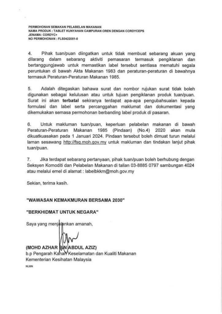 CordyC+ Lulus Ujian Makmal & Kementerian Kesihatan Malaysia (KKM).